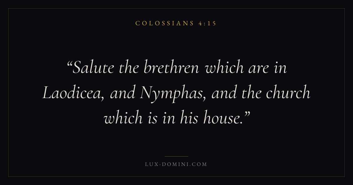 Salute the brethren which are in Laodicea, and Nymphas, and the church which is in his house.