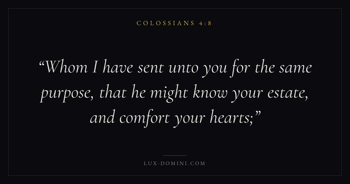 Whom I have sent unto you for the same purpose, that he might know your estate, and comfort your hearts;