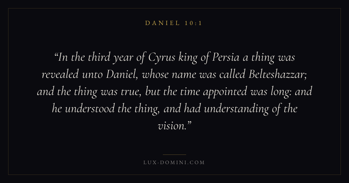 In the third year of Cyrus king of Persia a thing was revealed unto Daniel, whose name was called Belteshazzar; and the thing was true, but the time appointed was long: and he understood the thing, and had understanding of the vision.