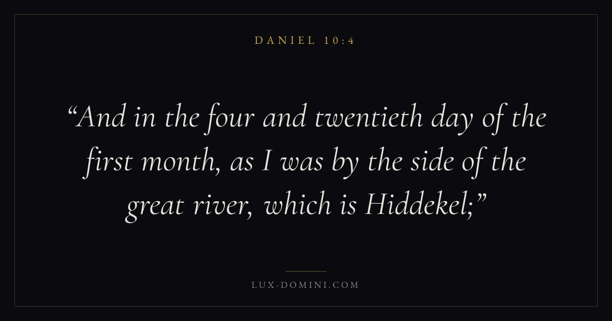 And in the four and twentieth day of the first month, as I was by the side of the great river, which is Hiddekel;