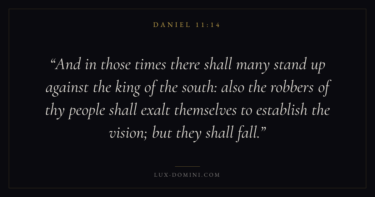 And in those times there shall many stand up against the king of the south: also the robbers of thy people shall exalt themselves to establish the vision; but they shall fall.