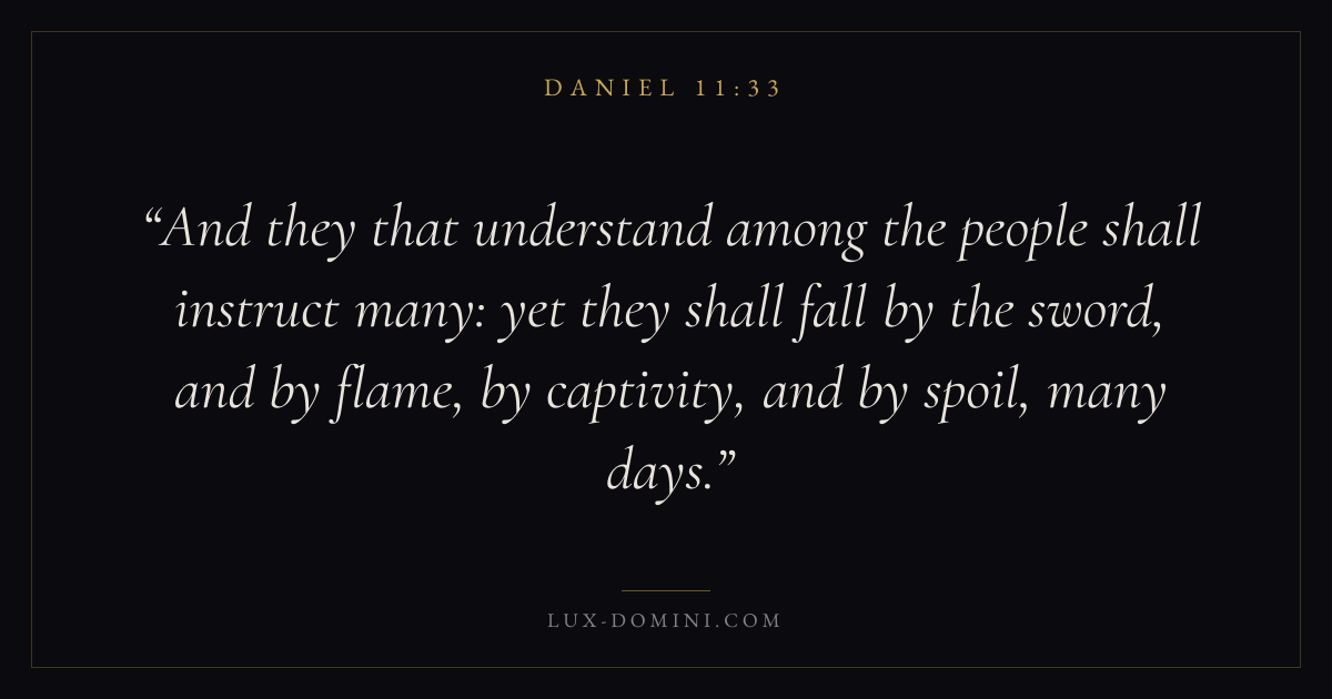 And they that understand among the people shall instruct many: yet they shall fall by the sword, and by flame, by captivity, and by spoil, many days.