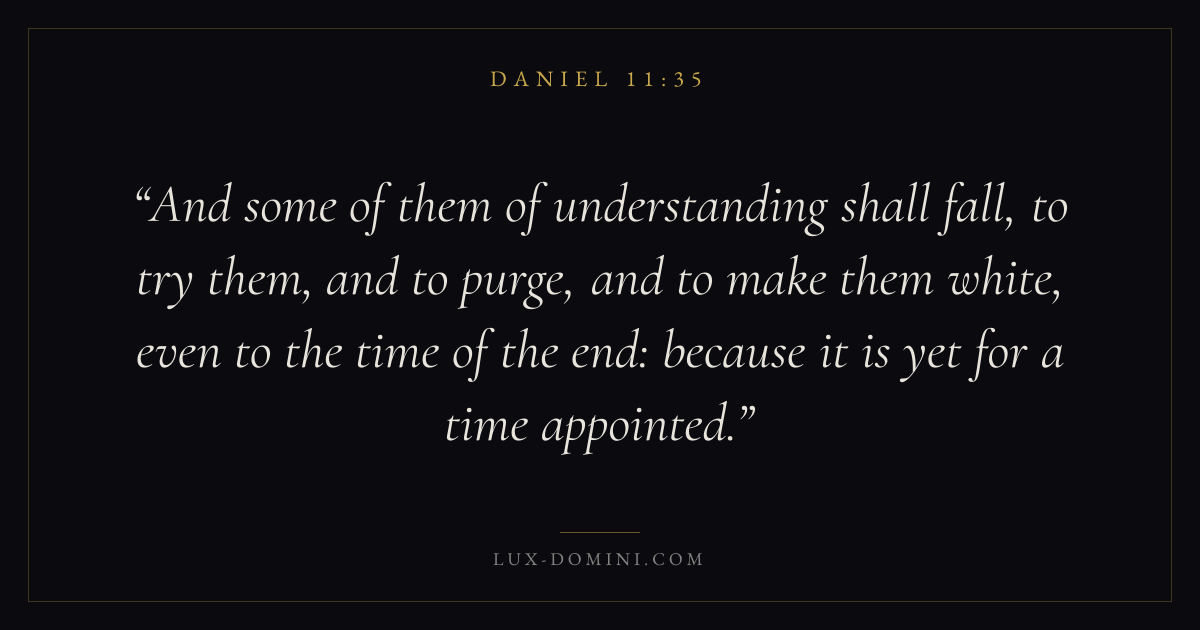 And some of them of understanding shall fall, to try them, and to purge, and to make them white, even to the time of the end: because it is yet for a time appointed.