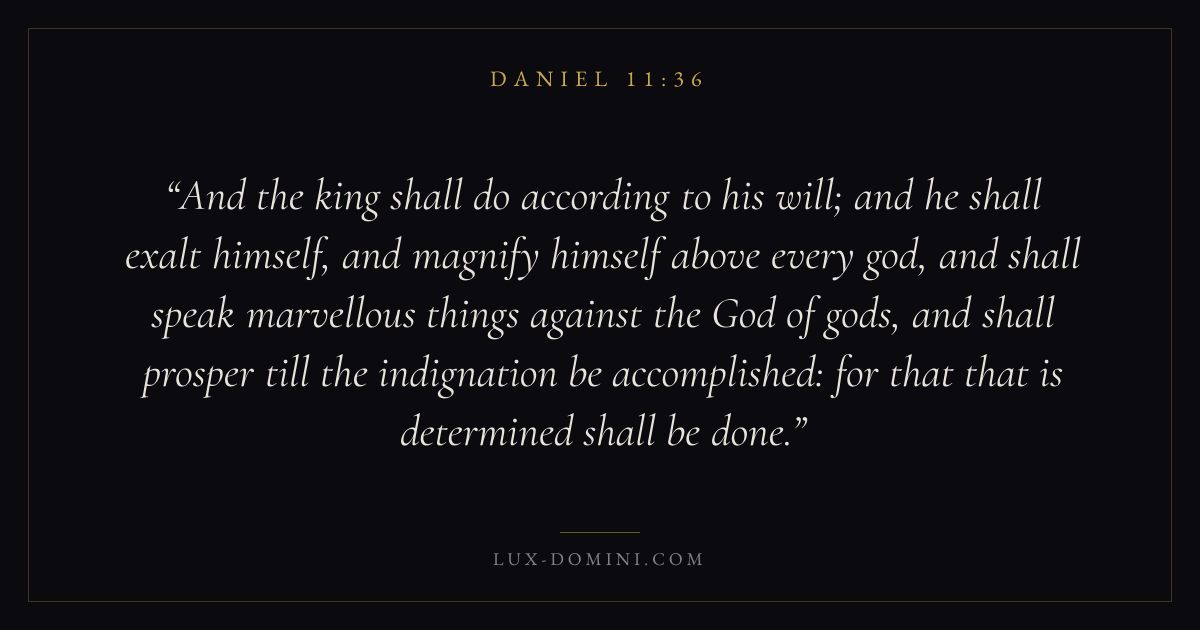 And the king shall do according to his will; and he shall exalt himself, and magnify himself above every god, and shall speak marvellous things against the God of gods, and shall prosper till the indignation be accomplished: for that that is determined shall be done.