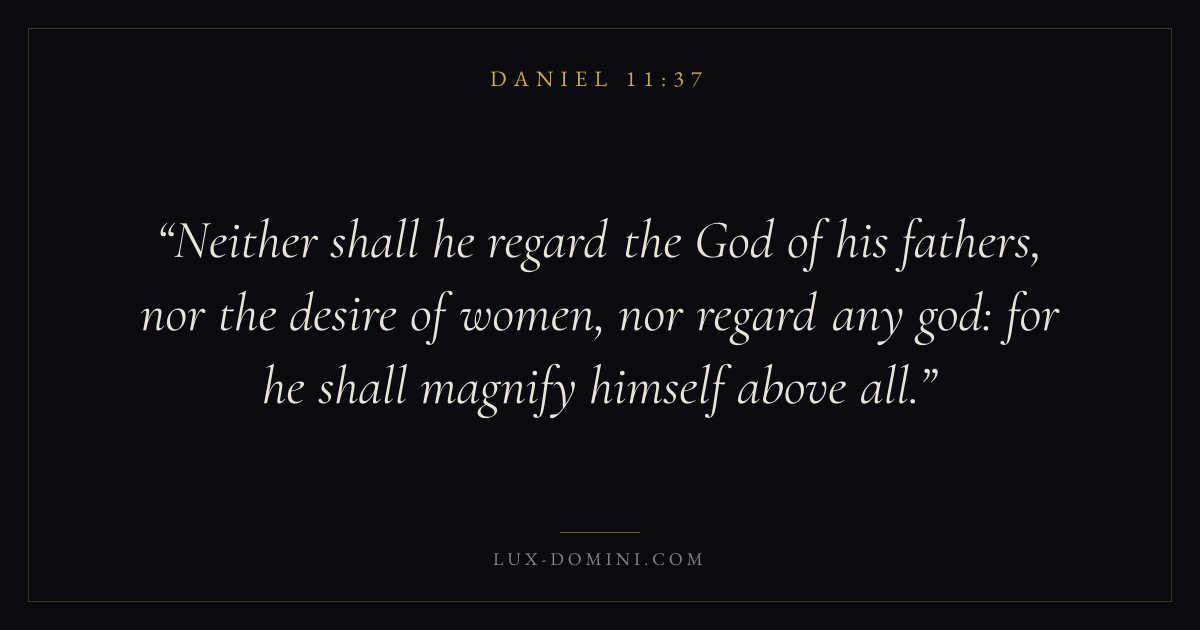 Neither shall he regard the God of his fathers, nor the desire of women, nor regard any god: for he shall magnify himself above all.