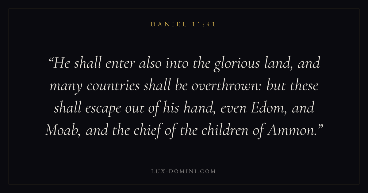 He shall enter also into the glorious land, and many countries shall be overthrown: but these shall escape out of his hand, even Edom, and Moab, and the chief of the children of Ammon.