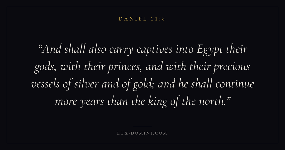 And shall also carry captives into Egypt their gods, with their princes, and with their precious vessels of silver and of gold; and he shall continue more years than the king of the north.