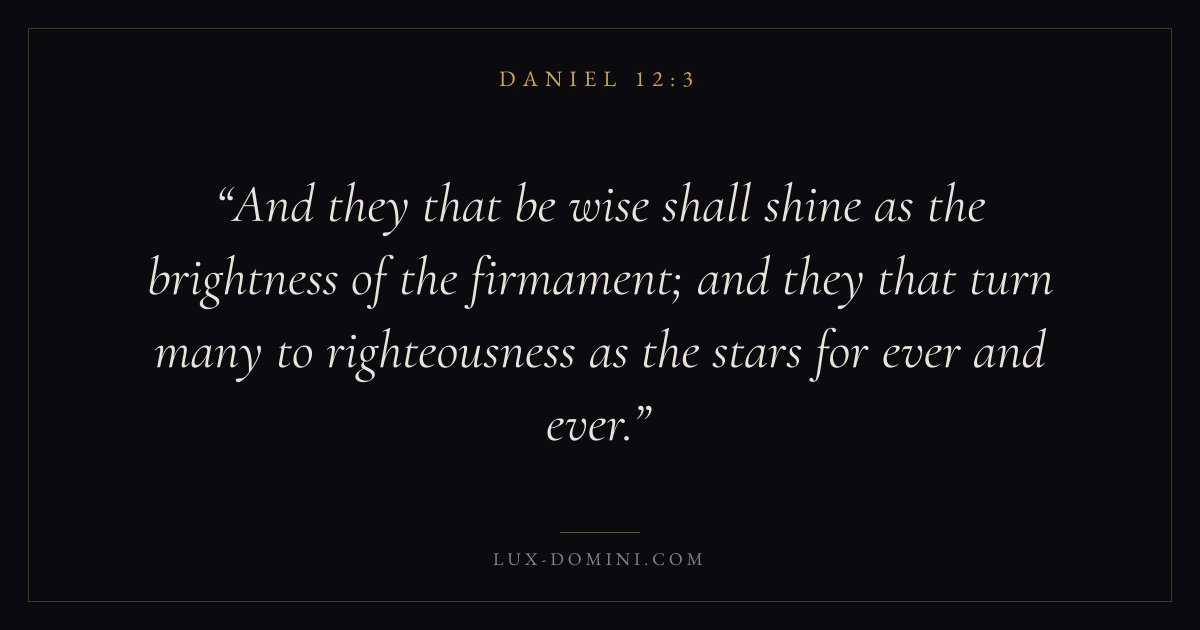 And they that be wise shall shine as the brightness of the firmament; and they that turn many to righteousness as the stars for ever and ever.