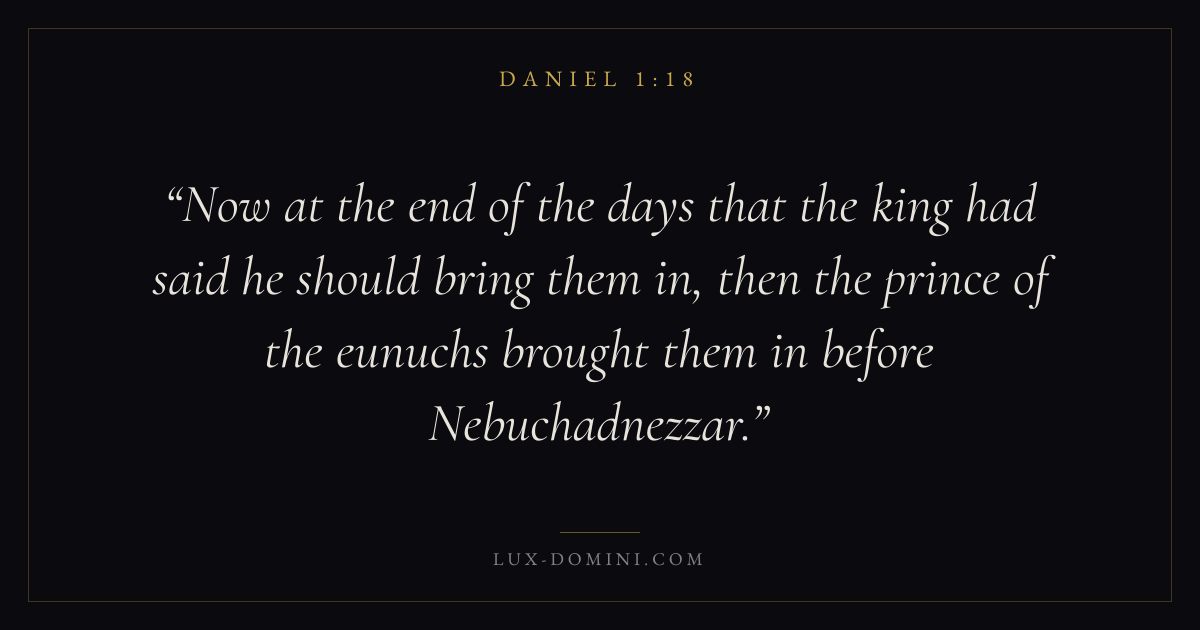 Now at the end of the days that the king had said he should bring them in, then the prince of the eunuchs brought them in before Nebuchadnezzar.