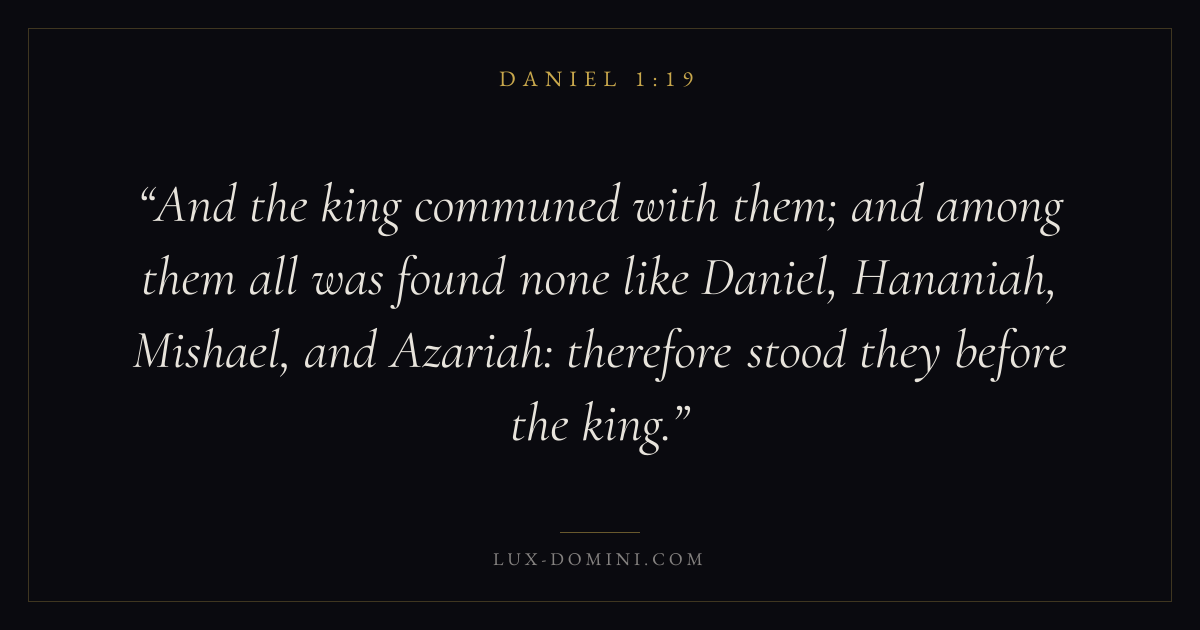 And the king communed with them; and among them all was found none like Daniel, Hananiah, Mishael, and Azariah: therefore stood they before the king.