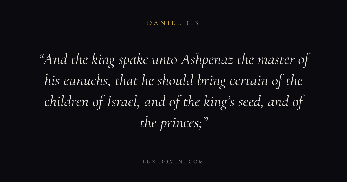 And the king spake unto Ashpenaz the master of his eunuchs, that he should bring certain of the children of Israel, and of the king’s seed, and of the princes;