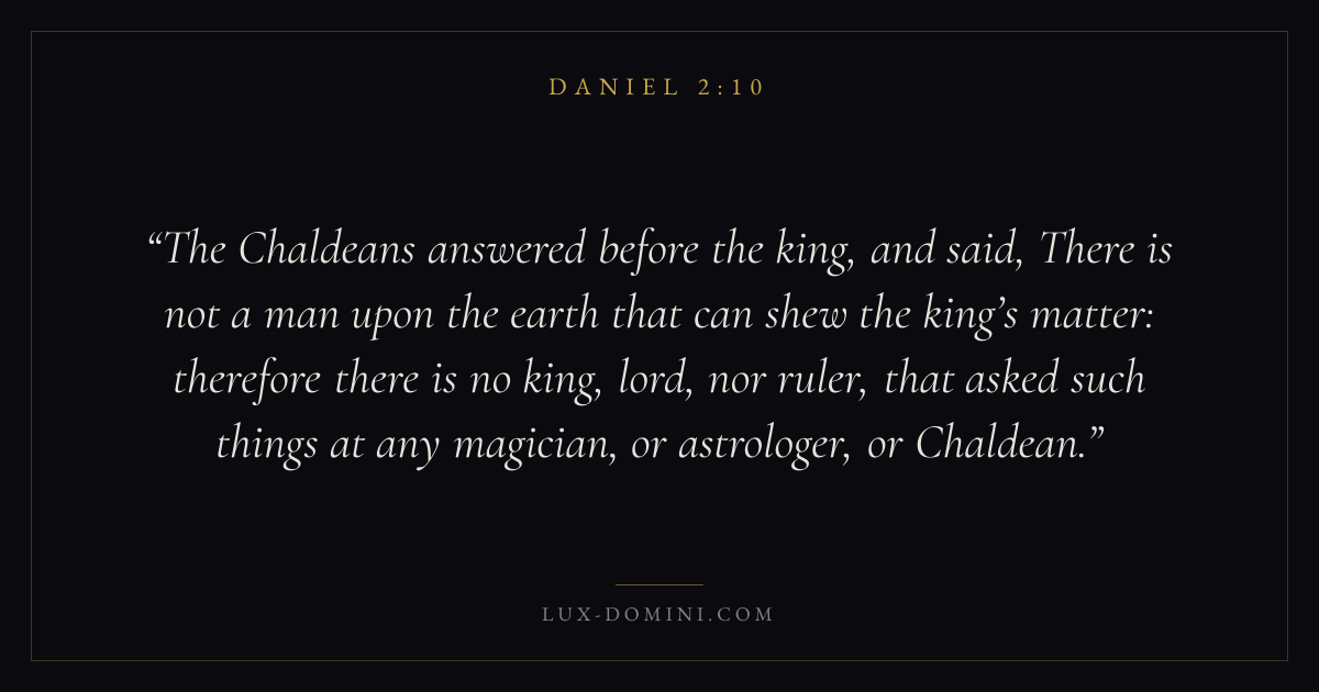 The Chaldeans answered before the king, and said, There is not a man upon the earth that can shew the king’s matter: therefore there is no king, lord, nor ruler, that asked such things at any magician, or astrologer, or Chaldean.