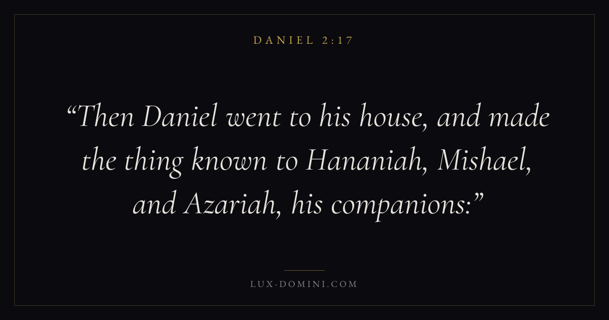Then Daniel went to his house, and made the thing known to Hananiah, Mishael, and Azariah, his companions: