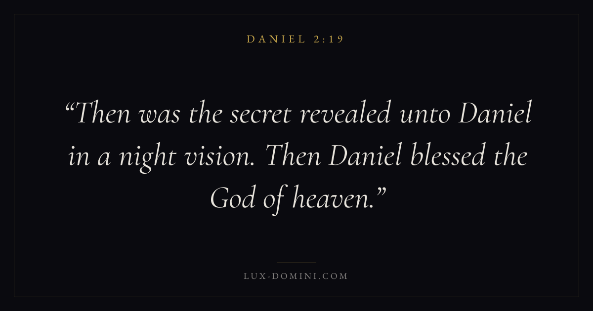 Then was the secret revealed unto Daniel in a night vision. Then Daniel blessed the God of heaven.