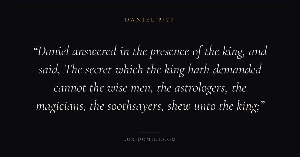 Daniel answered in the presence of the king, and said, The secret which the king hath demanded cannot the wise men, the astrologers, the magicians, the soothsayers, shew unto the king;