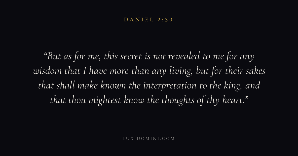 But as for me, this secret is not revealed to me for any wisdom that I have more than any living, but for their sakes that shall make known the interpretation to the king, and that thou mightest know the thoughts of thy heart.