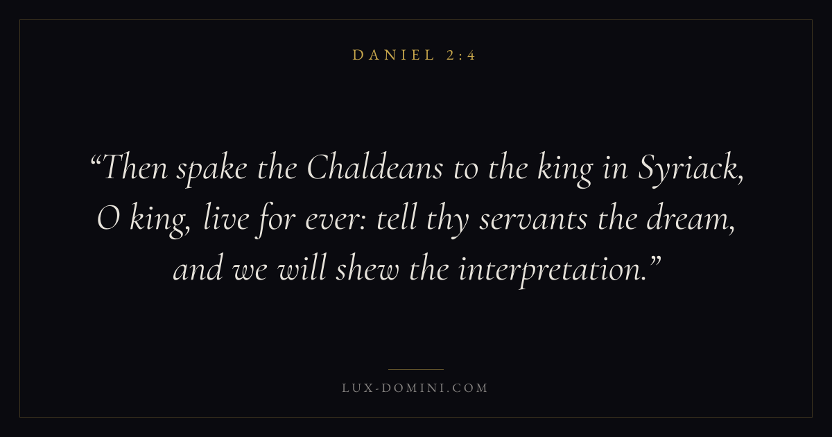 Then spake the Chaldeans to the king in Syriack, O king, live for ever: tell thy servants the dream, and we will shew the interpretation.