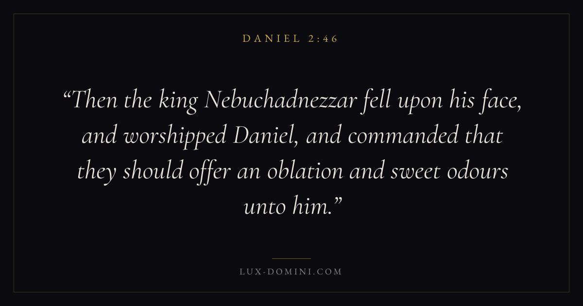 Then the king Nebuchadnezzar fell upon his face, and worshipped Daniel, and commanded that they should offer an oblation and sweet odours unto him.