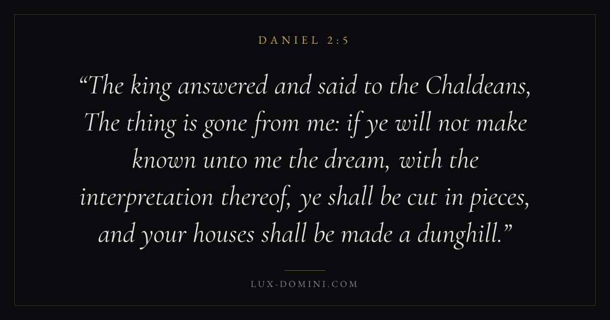 The king answered and said to the Chaldeans, The thing is gone from me: if ye will not make known unto me the dream, with the interpretation thereof, ye shall be cut in pieces, and your houses shall be made a dunghill.