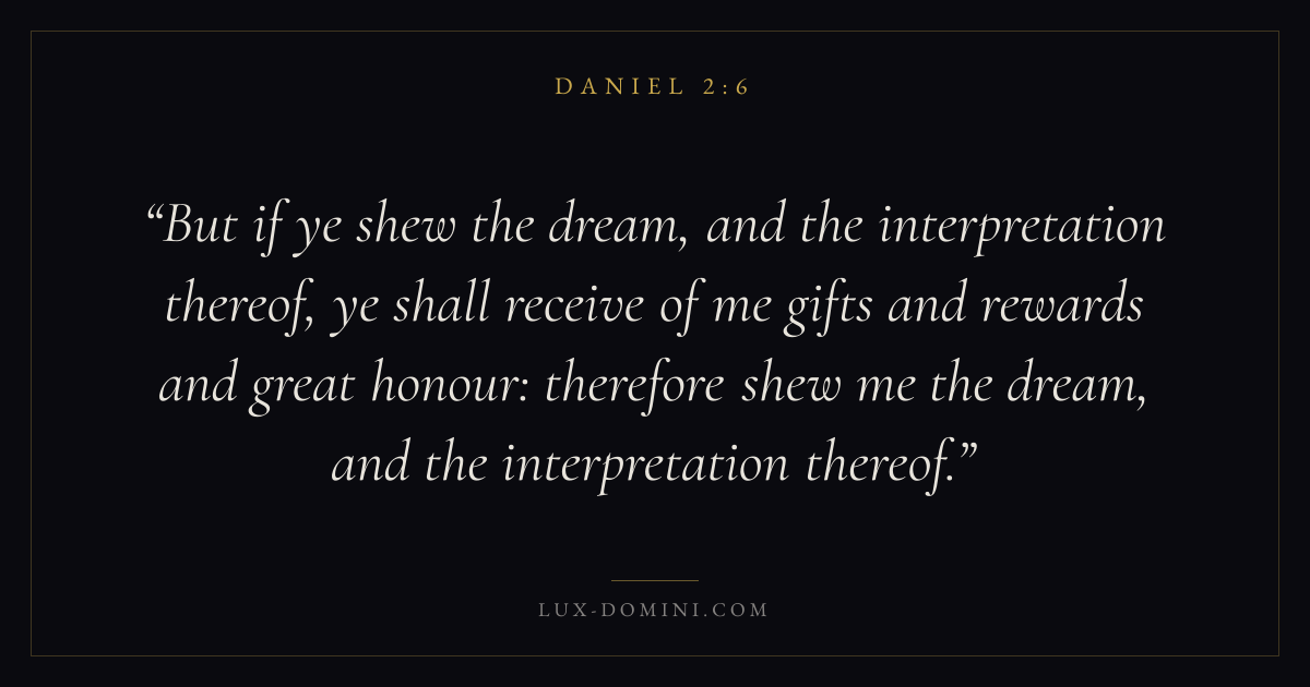 But if ye shew the dream, and the interpretation thereof, ye shall receive of me gifts and rewards and great honour: therefore shew me the dream, and the interpretation thereof.