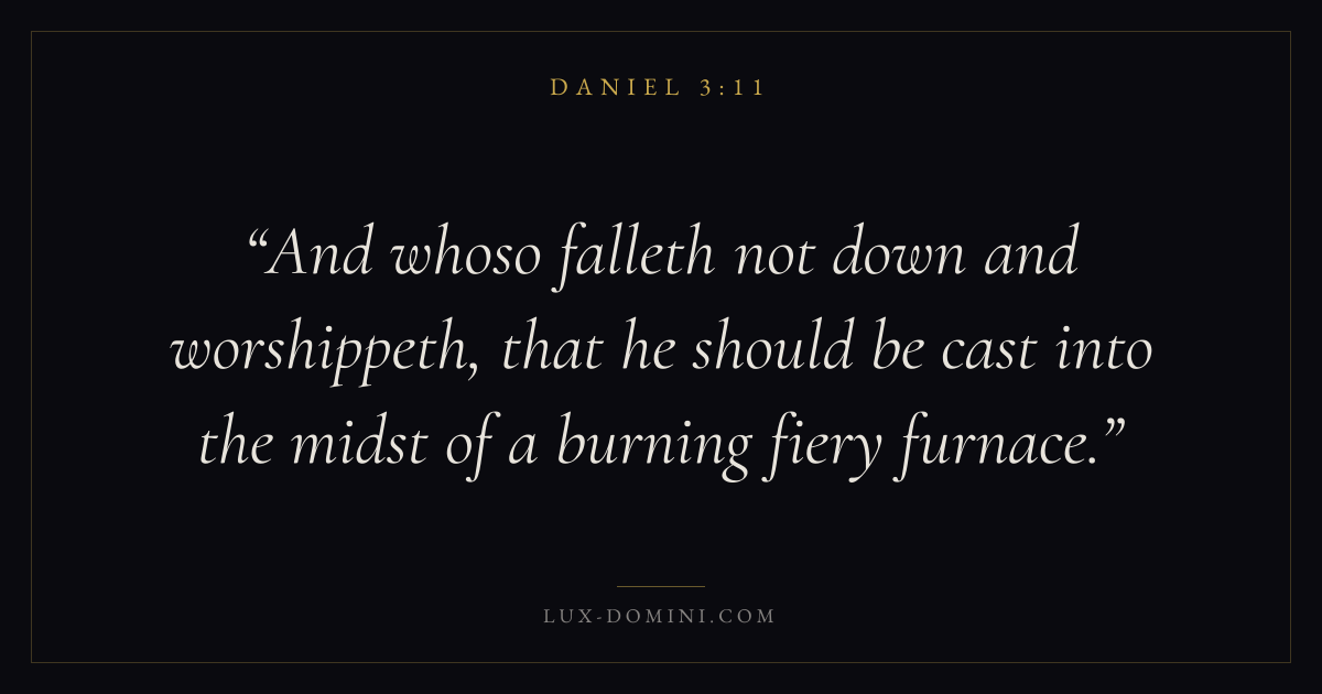 And whoso falleth not down and worshippeth, that he should be cast into the midst of a burning fiery furnace.