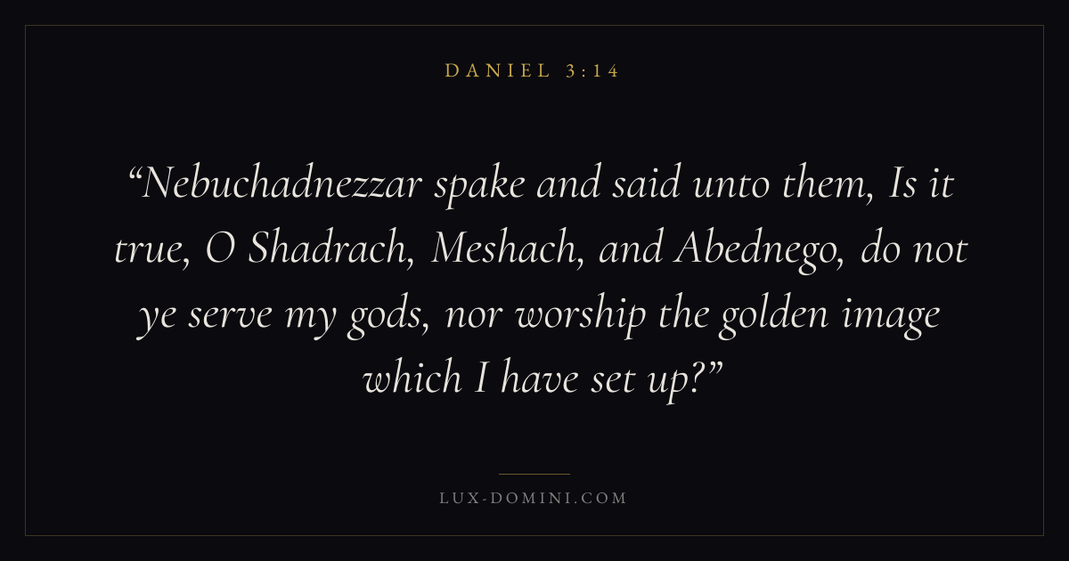 Nebuchadnezzar spake and said unto them, Is it true, O Shadrach, Meshach, and Abednego, do not ye serve my gods, nor worship the golden image which I have set up?