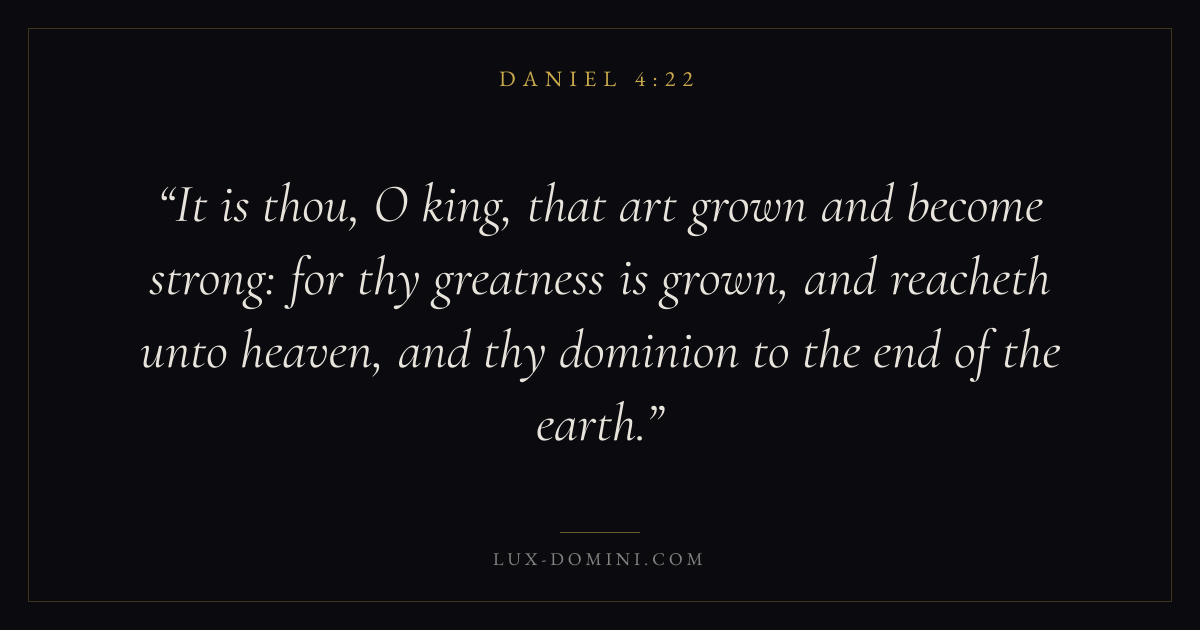 It is thou, O king, that art grown and become strong: for thy greatness is grown, and reacheth unto heaven, and thy dominion to the end of the earth.