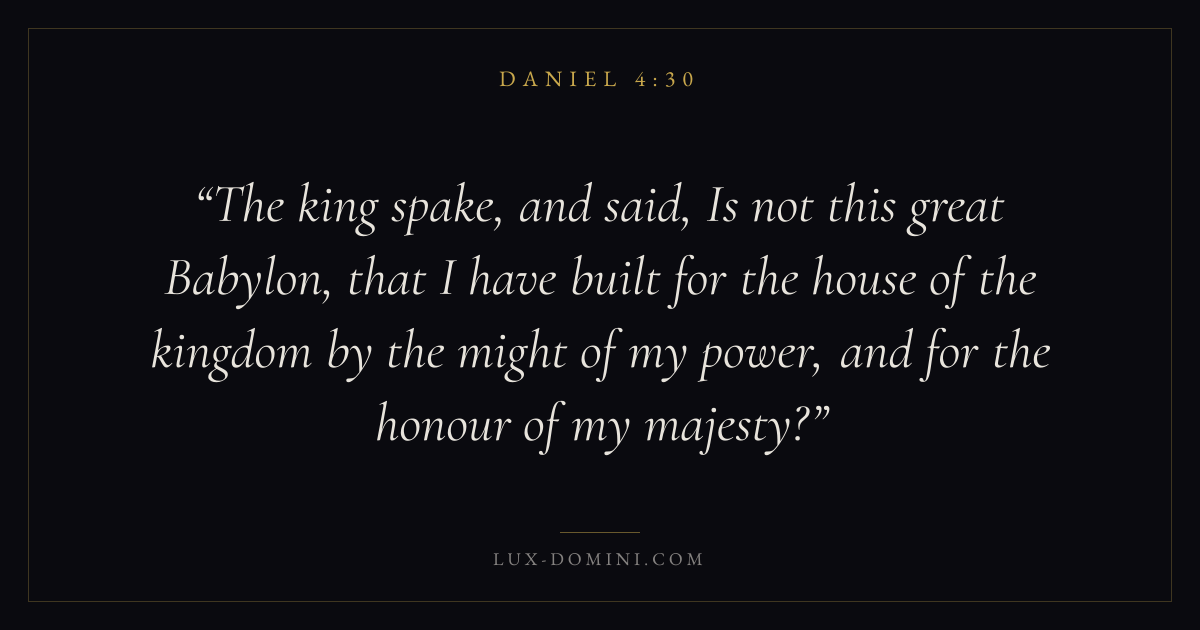 The king spake, and said, Is not this great Babylon, that I have built for the house of the kingdom by the might of my power, and for the honour of my majesty?