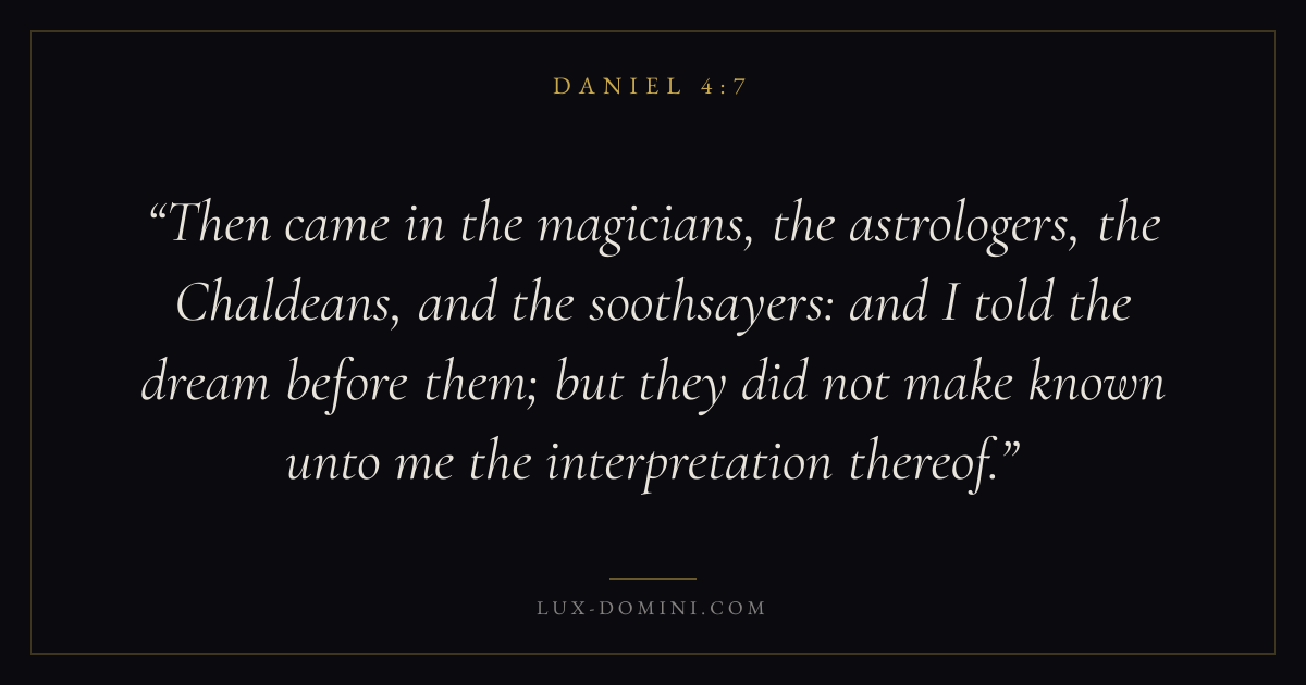 Then came in the magicians, the astrologers, the Chaldeans, and the soothsayers: and I told the dream before them; but they did not make known unto me the interpretation thereof.