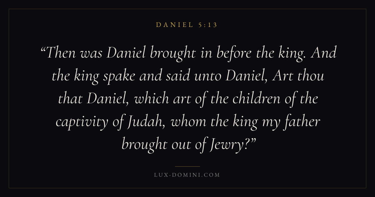 Then was Daniel brought in before the king. And the king spake and said unto Daniel, Art thou that Daniel, which art of the children of the captivity of Judah, whom the king my father brought out of Jewry?