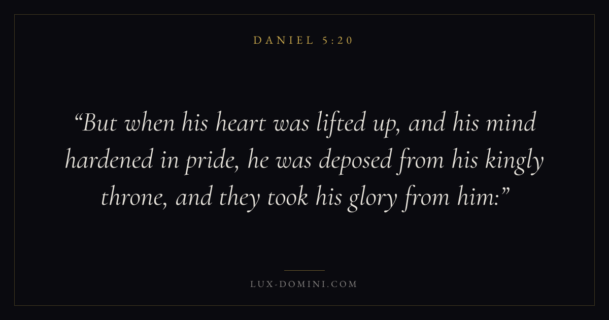 But when his heart was lifted up, and his mind hardened in pride, he was deposed from his kingly throne, and they took his glory from him:
