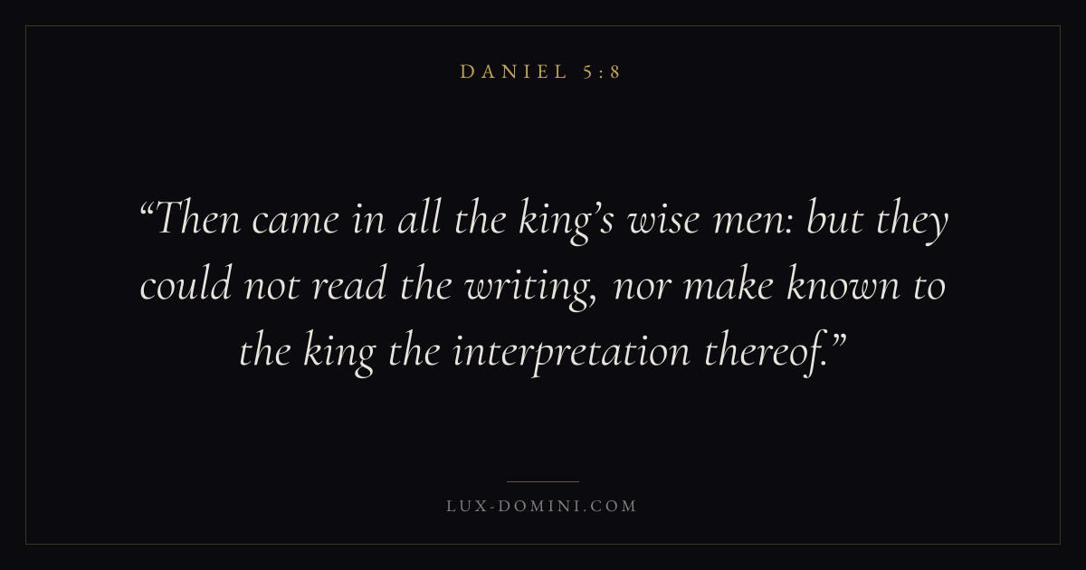Then came in all the king’s wise men: but they could not read the writing, nor make known to the king the interpretation thereof.