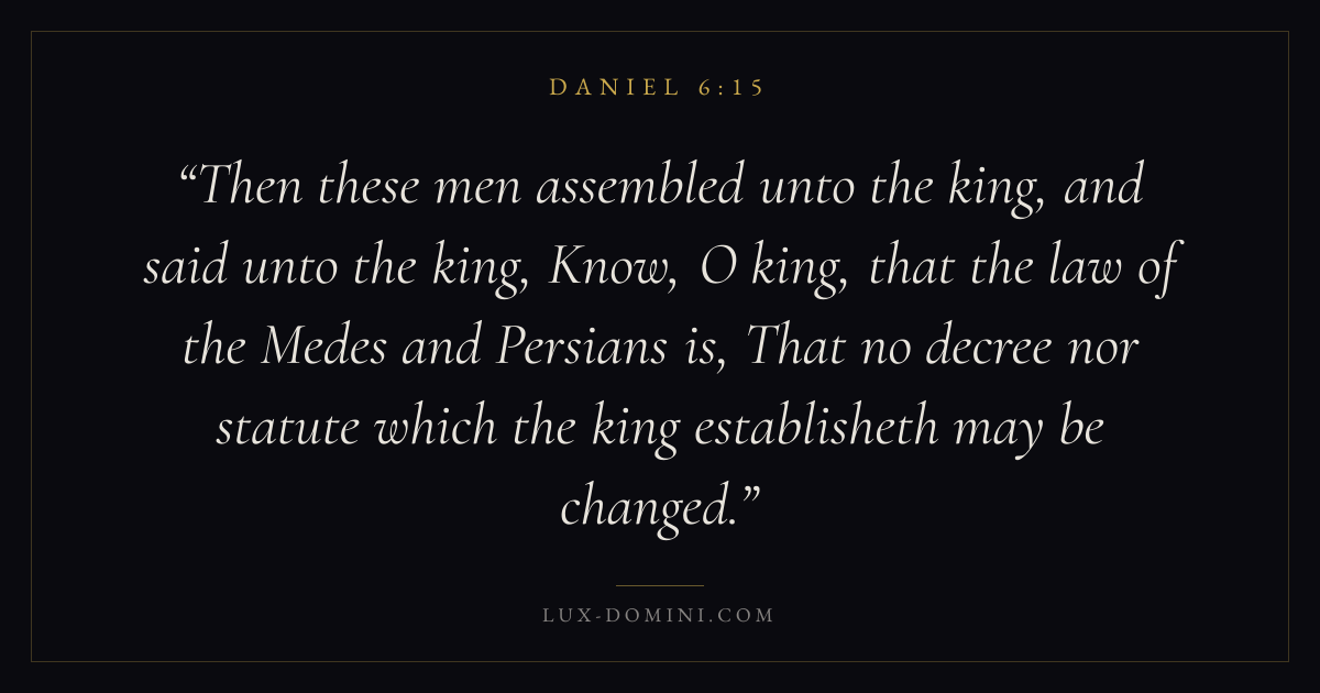 Then these men assembled unto the king, and said unto the king, Know, O king, that the law of the Medes and Persians is, That no decree nor statute which the king establisheth may be changed.