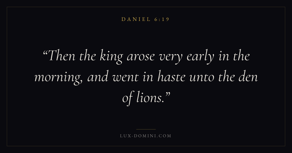 Then the king arose very early in the morning, and went in haste unto the den of lions.