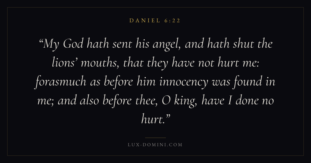 My God hath sent his angel, and hath shut the lions’ mouths, that they have not hurt me: forasmuch as before him innocency was found in me; and also before thee, O king, have I done no hurt.