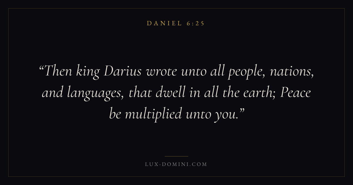 Then king Darius wrote unto all people, nations, and languages, that dwell in all the earth; Peace be multiplied unto you.