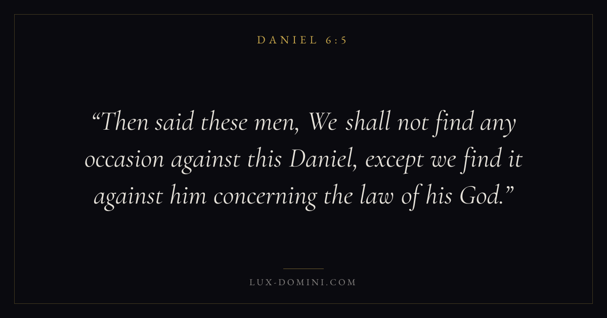 Then said these men, We shall not find any occasion against this Daniel, except we find it against him concerning the law of his God.