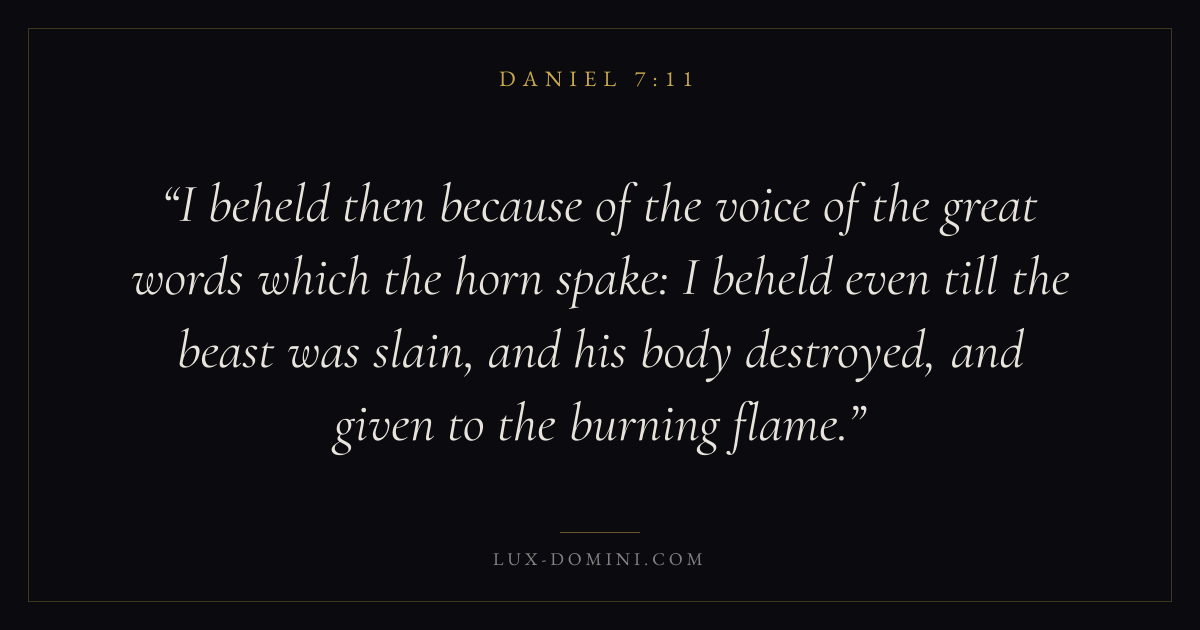 I beheld then because of the voice of the great words which the horn spake: I beheld even till the beast was slain, and his body destroyed, and given to the burning flame.
