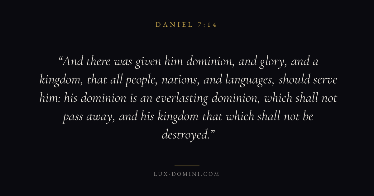 And there was given him dominion, and glory, and a kingdom, that all people, nations, and languages, should serve him: his dominion is an everlasting dominion, which shall not pass away, and his kingdom that which shall not be destroyed.