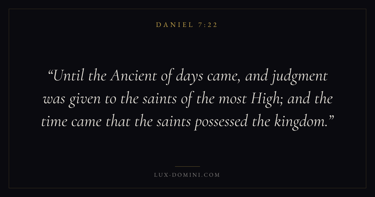 Until the Ancient of days came, and judgment was given to the saints of the most High; and the time came that the saints possessed the kingdom.
