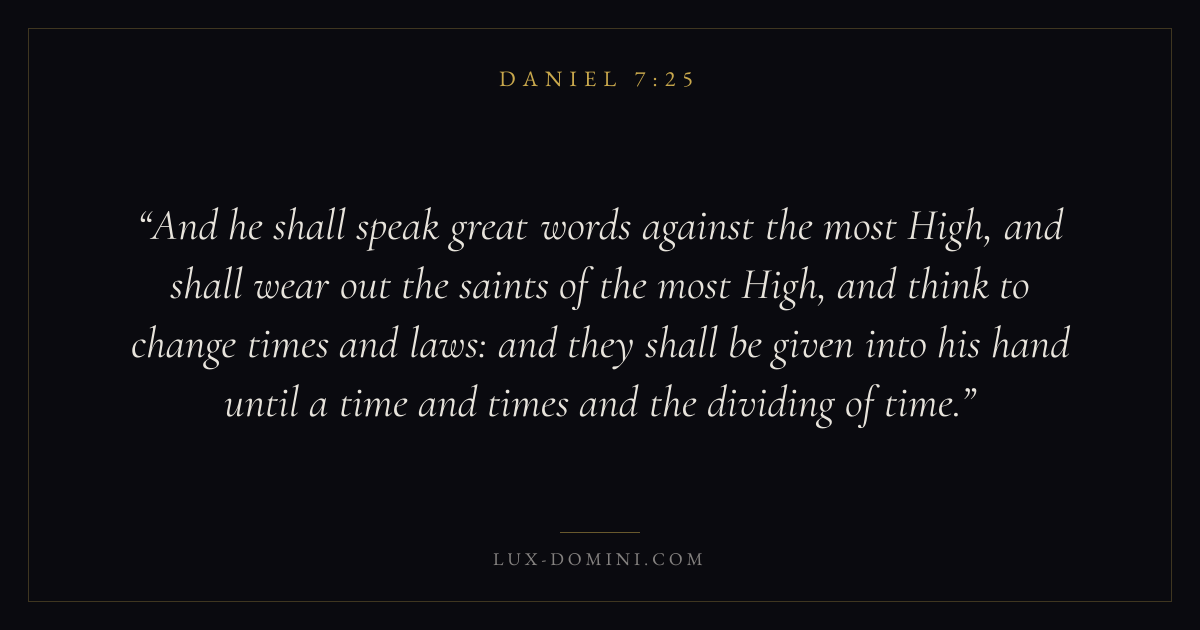 And he shall speak great words against the most High, and shall wear out the saints of the most High, and think to change times and laws: and they shall be given into his hand until a time and times and the dividing of time.