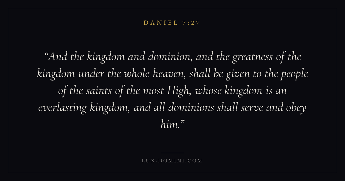 And the kingdom and dominion, and the greatness of the kingdom under the whole heaven, shall be given to the people of the saints of the most High, whose kingdom is an everlasting kingdom, and all dominions shall serve and obey him.