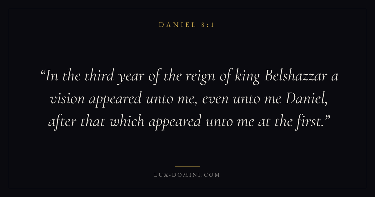 In the third year of the reign of king Belshazzar a vision appeared unto me, even unto me Daniel, after that which appeared unto me at the first.