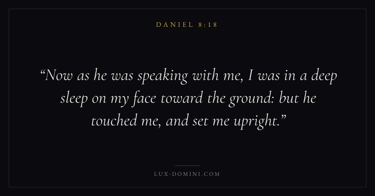 Now as he was speaking with me, I was in a deep sleep on my face toward the ground: but he touched me, and set me upright.
