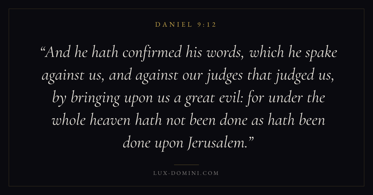 And he hath confirmed his words, which he spake against us, and against our judges that judged us, by bringing upon us a great evil: for under the whole heaven hath not been done as hath been done upon Jerusalem.