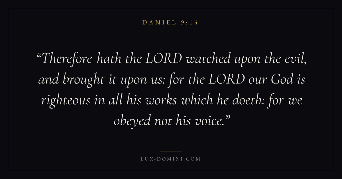 Therefore hath the LORD watched upon the evil, and brought it upon us: for the LORD our God is righteous in all his works which he doeth: for we obeyed not his voice.