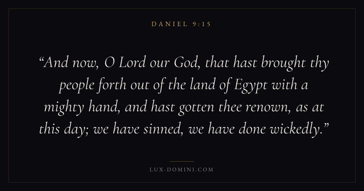 And now, O Lord our God, that hast brought thy people forth out of the land of Egypt with a mighty hand, and hast gotten thee renown, as at this day; we have sinned, we have done wickedly.