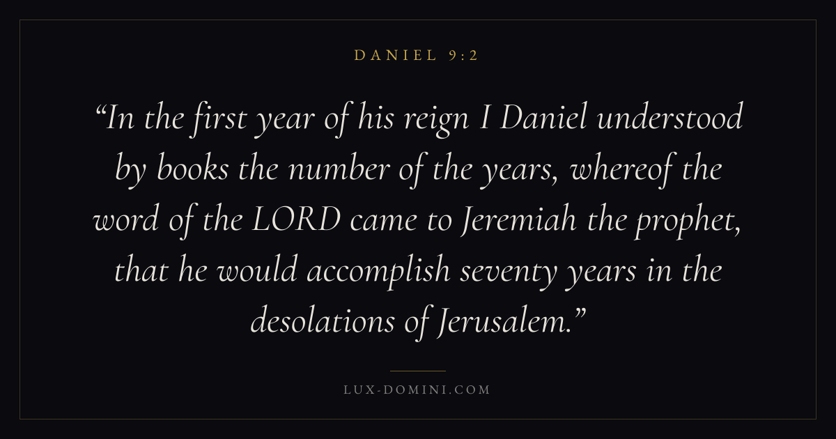 In the first year of his reign I Daniel understood by books the number of the years, whereof the word of the LORD came to Jeremiah the prophet, that he would accomplish seventy years in the desolations of Jerusalem.