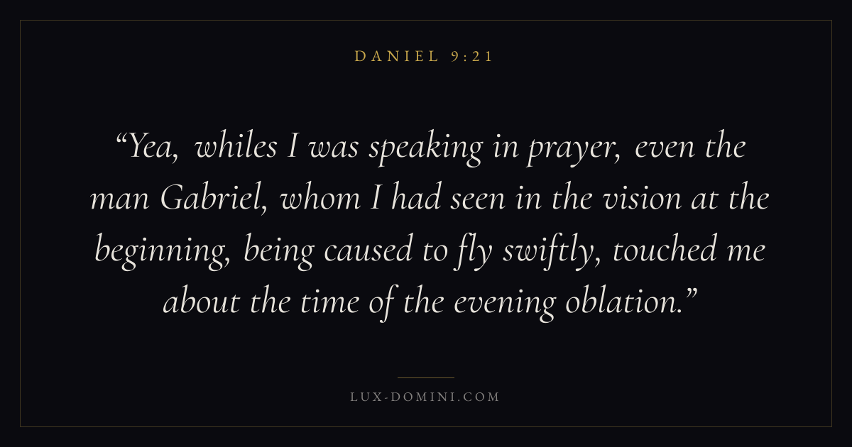 Yea, whiles I was speaking in prayer, even the man Gabriel, whom I had seen in the vision at the beginning, being caused to fly swiftly, touched me about the time of the evening oblation.