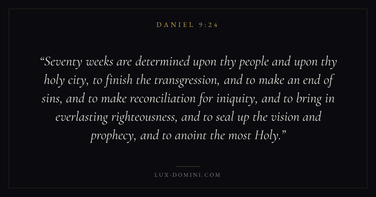 Seventy weeks are determined upon thy people and upon thy holy city, to finish the transgression, and to make an end of sins, and to make reconciliation for iniquity, and to bring in everlasting righteousness, and to seal up the vision and prophecy, and to anoint the most Holy.